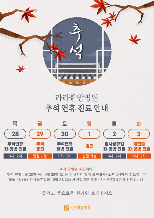 추석 당일만 휴진이며,