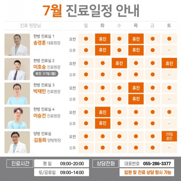 7월 원장님별 진료일정을 안내합니다.