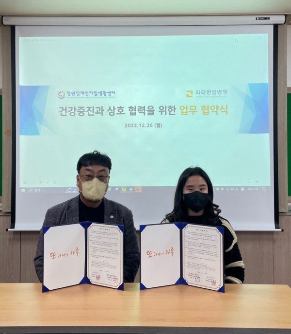 [MOU] 창원장애인자립생활센터 건강 복지 협약 목록 본문 라라한방병원이 창원장애인자립생활센터와 상호 협력을 위한 MOU 체결하였습니다. 라라한방병원은 이번 협약을 통해 창원장애인자립생활센터 장애인들의 행복한 생활과 건강한 복지 증진을 위해 건강,의료 서비스의 적극적 혜택을 제공하고 있습니다. 바쁘신 와중에도 이번 협약에 참석해주셔서 감사드리며 창원장애인자립생활센터와 협약을 체결하게되어 라라한방병원도 매우 기쁜 마음입니다. 목록으로 이전글[MOU] 창원천마라이온스 건강 복지 협약 23.01.16 다음글[언론보도] 창원특례시 배드민턴협회 제5대 회장에 김기성씨 선출 22.12.22
