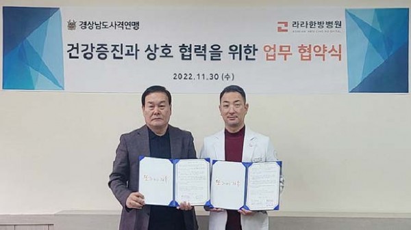 [언론보도] 라라한방병원-경남사격연맹 건강 복지 협약 목록 본문 라라한방병원이 지난달 30일 경남도사격연맹과 '지역 내의 행복한 생활과 건강 복지 증진을 위한 업무협약(MOU)'을 체결했다. 협약에 따라 라라한방병원은 경상남도사격연맹 회원에게 건강, 의료서비스를 적극 연계해 더 나은 의료서비스를 제공하기로 했다. 민병욱 기자 관련링크 http://www.idomin.com/news/articleView.html?idxno=811601 371회 연결 목록으로 이전글[MOU] 경상남도외국인주민지원센터 건강 복지 협약 22.12.21 다음글도수치료 후 유의사항 22.08.11