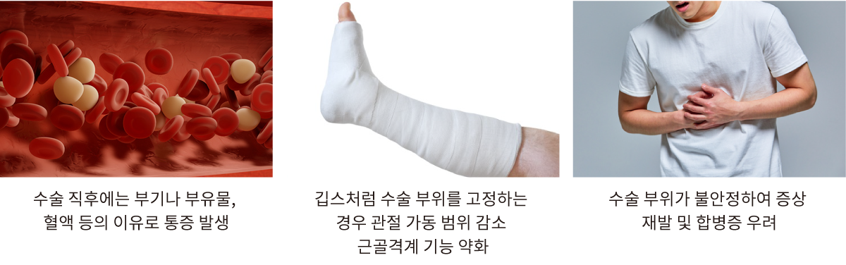 수술 부위의 결찰이 남아 있고 근육 조직이 완전이 회복되지 않은 상태에서
