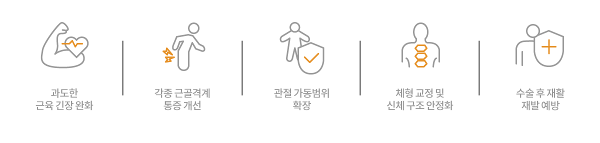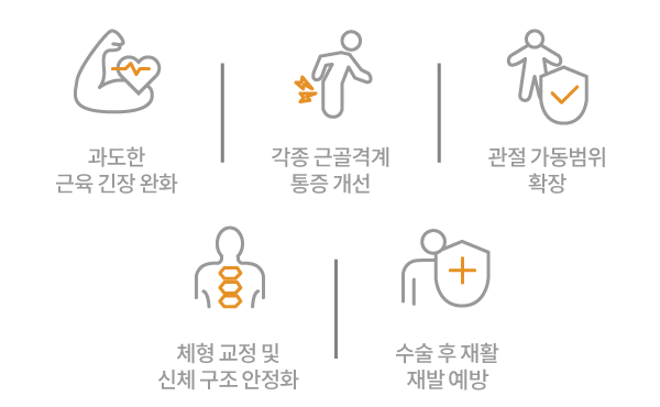디스크, 협착증, 관절염 등 근골격계 문제와 근육 및 관절 통증을 개선합니다.