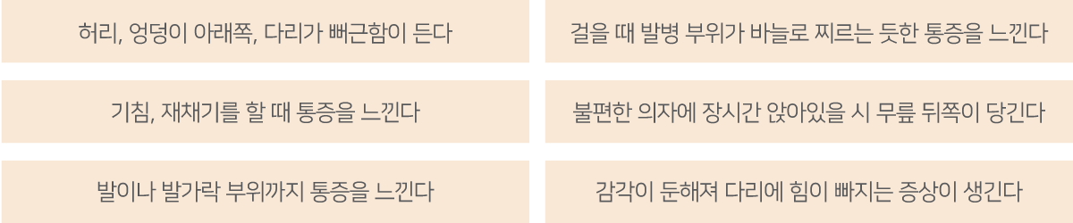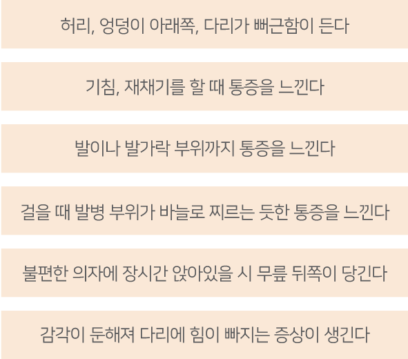그로인해 천골을 통해 다리로 가는 좌골신경에 영향을 주어