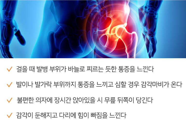 좌골신경통은 좌골신경에 일어난 손상이나 압박, 염증 등으로 인해 대퇴부나 종아리, 발등이