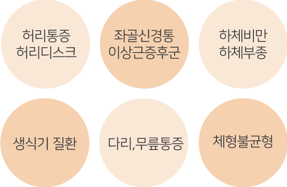 회복시키고 자세 교정 및 허리 통증 완화를 목표로 치료합니다.