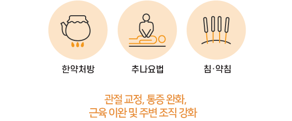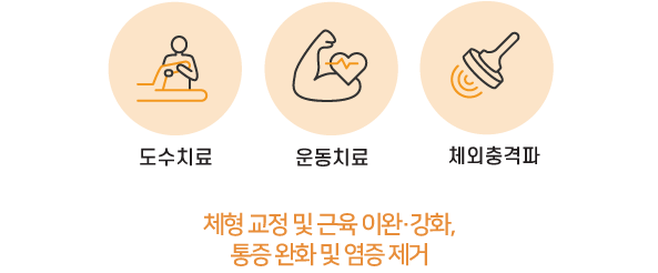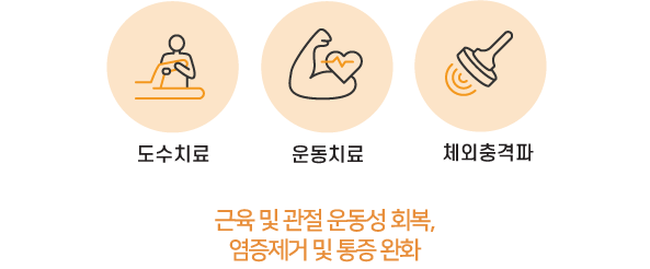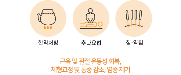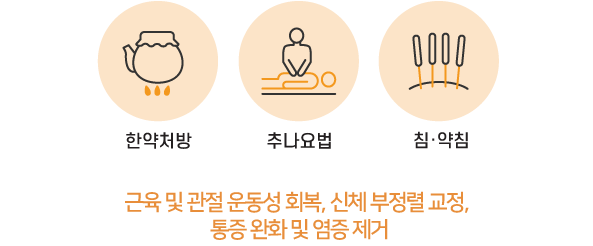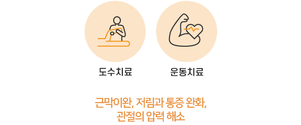 전신 근육의 균형을 유지해 통증 완화 및 근육과 인대 강화를 목표로 치료합니다.