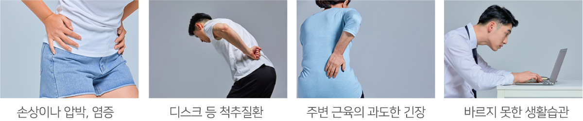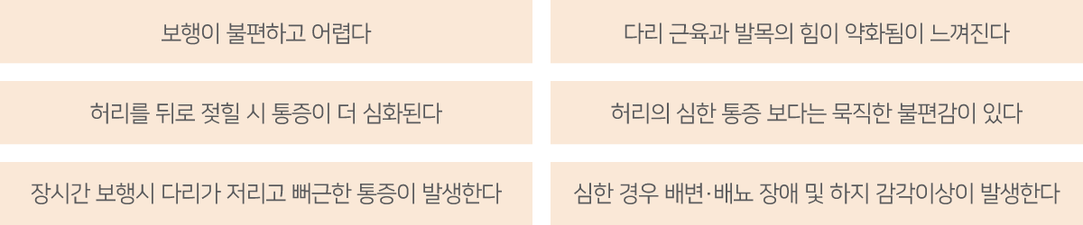 허리디스크나 척추관협착증, 그리고 척추 종양 등이 원인이 되어 발생할 수 있습니다.