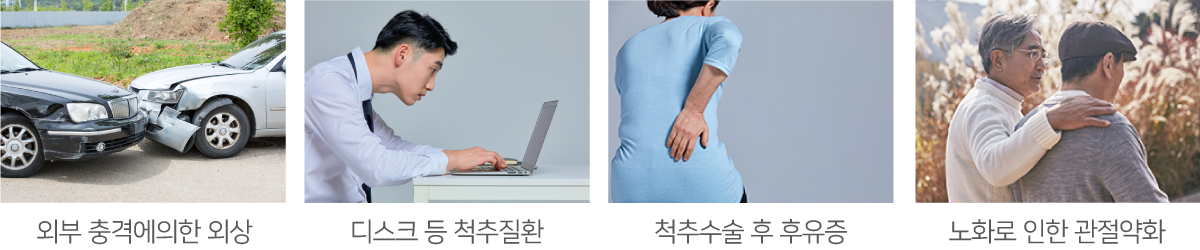 강한 충격을 받거나 노화, 또는 잘못된 자세로 인해 허리 주변의 근육과 인대에